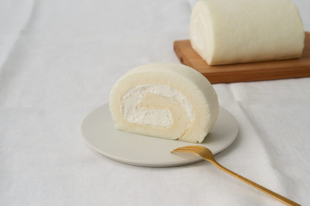 一般的なロールケーキの生地が黄色みを帯びるのは、卵黄を使っているからです。しかし、私たちはあえてその常識を疑い、生地を卵白のみで作り上げるという、型破りな発想に挑みました。